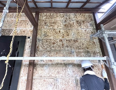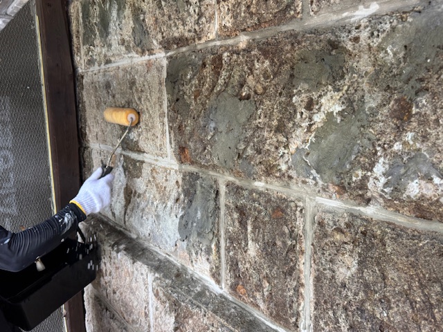 樹脂膜形成しない無機の力で、大谷石の風合いが活かされたまま施工が完了しました。